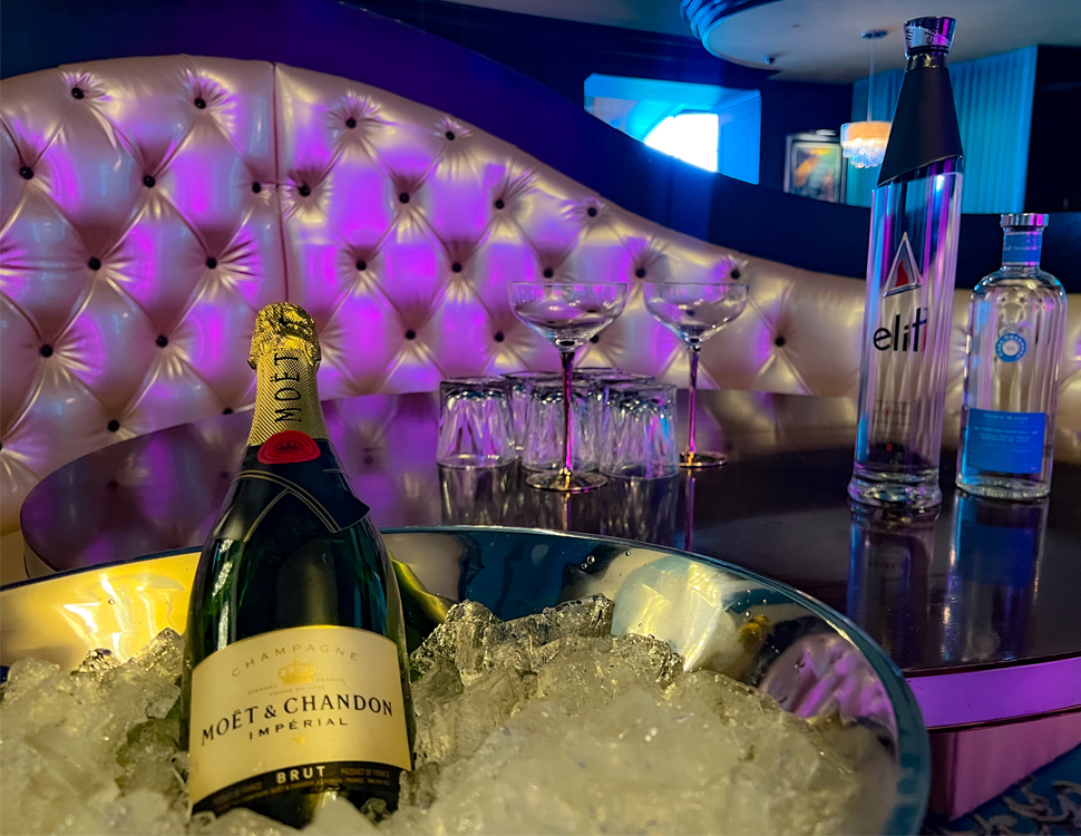 Guests who sign up for bottle service can also order their own cocktails or beer; these items are charged individually on the bar tab.