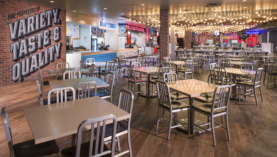 The area today provides six delicious quick-serve options from 11 a.m. to 9 p.m. or later most days of the week.