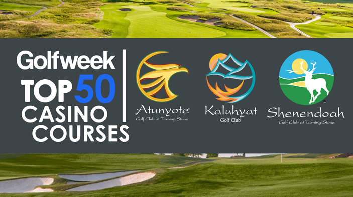 All three greens appeared on Golfweek’s most recent annual list of best casino courses in the United States. Leading the charge was our signature course, Atunyote, which climbed four spots to No. 9 from No. 13. Shenendoah was named No. 31 on the list, and Kaluhyat came in at No. 35.