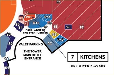 7 KITCHENS is located at New York’s most awarded resort, Turning Stone Resort Casino, home to more than 20 unique restaurants in the heart of Central New York – about 35 minutes east of Syracuse, 25 minutes west of Utica and 15 minutes southwest of Rome. Valet parking is available at The Tower at Turning Stone, The Brook at Turning Stone and The Lodge at Turning Stone, along with plenty of free parking at a four-level parking garage next to The Event Center.