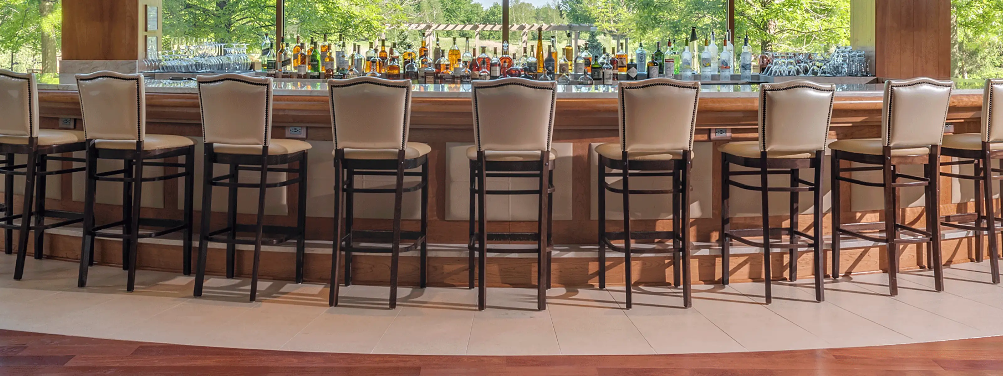 The Lodge Lounge sits perfectly aligned with a wall of windows that look west onto The Great Lawn.  At sunset, it’s a beautiful spot to watch the sky turn red, pink, orange and purple as evening arrives.  The bar, made of quartz and locally-sourced Cherrywood, provides ample space for guests to spread out and relax. Plus mixologists create enticing, hand-muddled cocktails.  Craft brews, exquisite wines and spirits served daily.