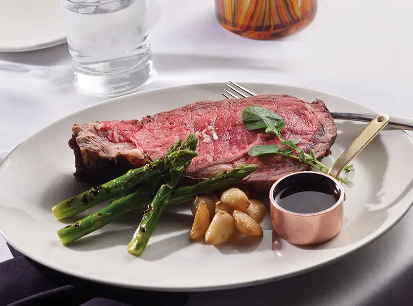 Enjoy a fresh take on steakhouse favorites like a 20oz bone-in ribeye, 16oz herb-crusted prime rib or our in-house dry-aged Delmonico. If the Brussels sprouts with NY maple syrup and bacon are on the menu, one taste and you’ll see why they’re consistently a guest favorite. For a lighter bite, catch seasonal seafood specialties like an oven-roasted salmon or Miso Chilean seabass filleted tableside.