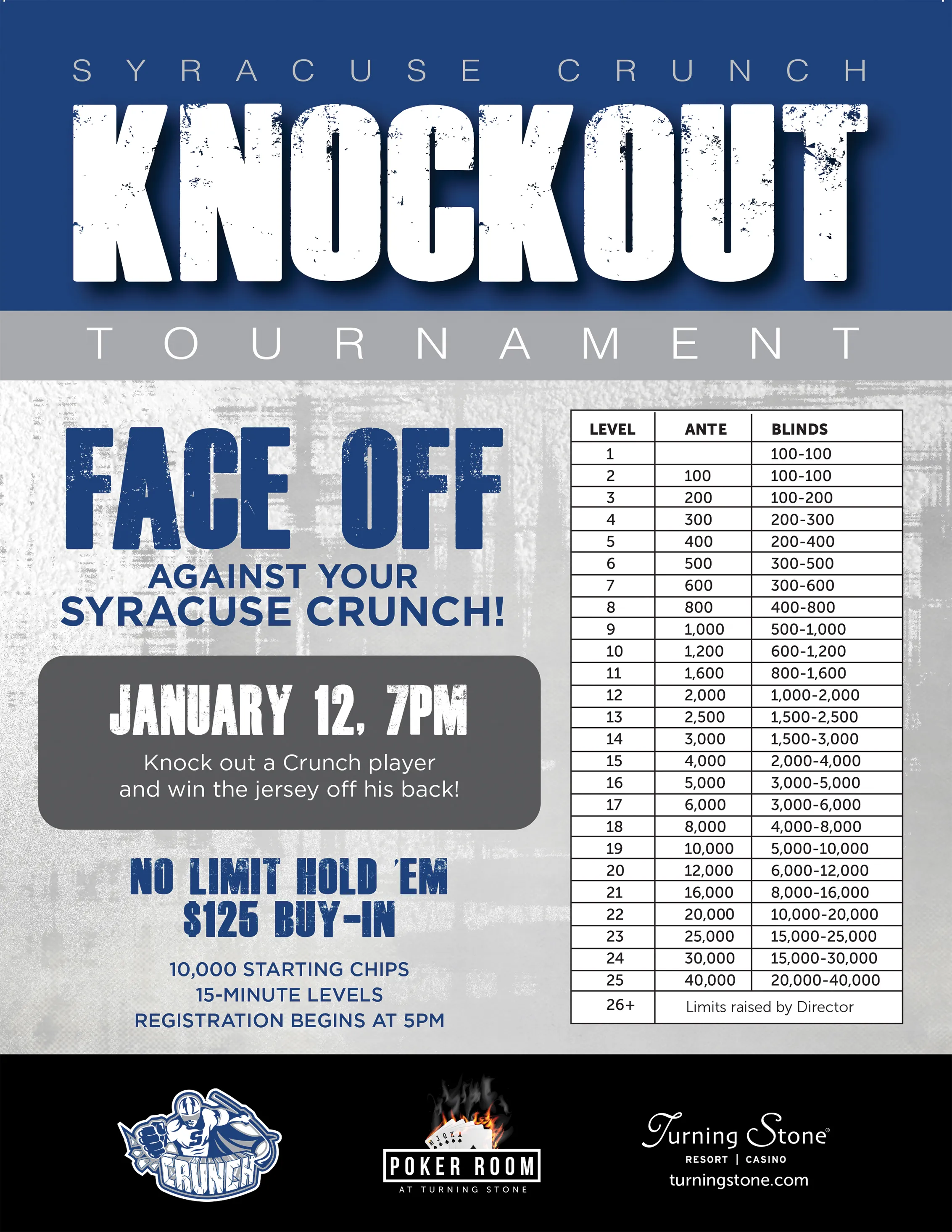 | Sportsplex at Turning Stone (valid when courses are closed for the season) | 2 half-hours at the Driving Range | 4 half-hours at the Driving Range | 4 half-hours at the Driving Range and 1 hour Golf Clinic | ||
