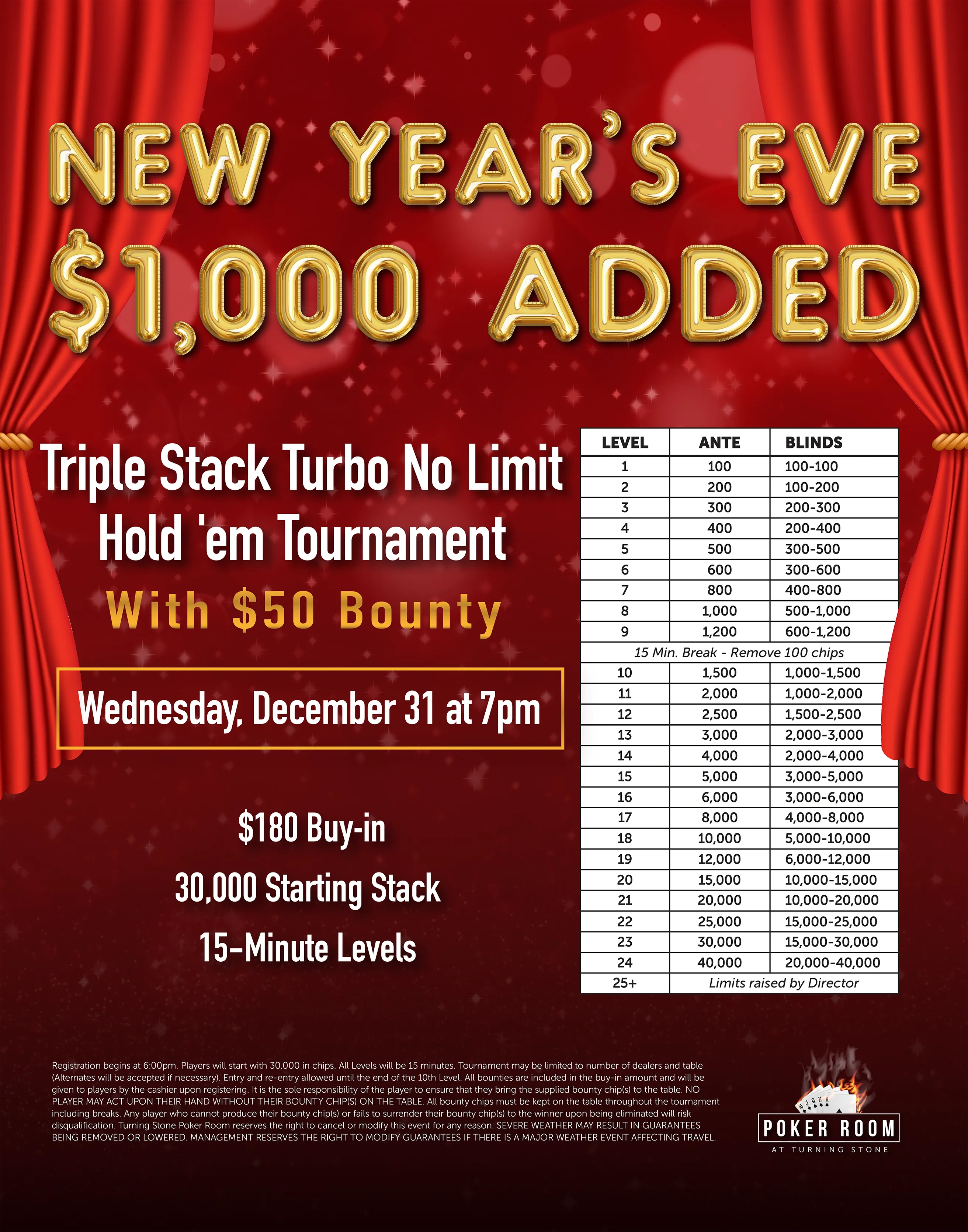 | Complimentary Show Tickets | Based on play | Based on play | Based on play | Based on play | Based on play |