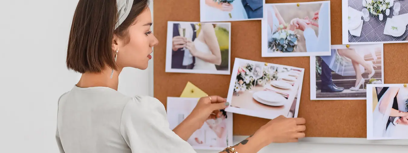 Inspiration is everywhere! Start envisioning your wedding style by browsing magazines, wedding trends, websites, and Pinterest. Choose a color scheme and create a mood board to share with your vendors. It's the perfect way to ensure a cohesive look.