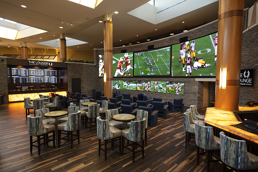 At Turning Stone, “The Lounge with Caesars Sports” will be prominently located at the resort’s main entrance. It will feature a massive 500-square-foot curved LED screen, with acuity similar to Times Square, visible from three sides and to visitors entering from the main entrance and the parking garage. Plus, there are an additional 16 large LED TVs throughout the sports book, including a mix of 65-inch screens and 85-inch screens to put the viewers at the center of the sports action.