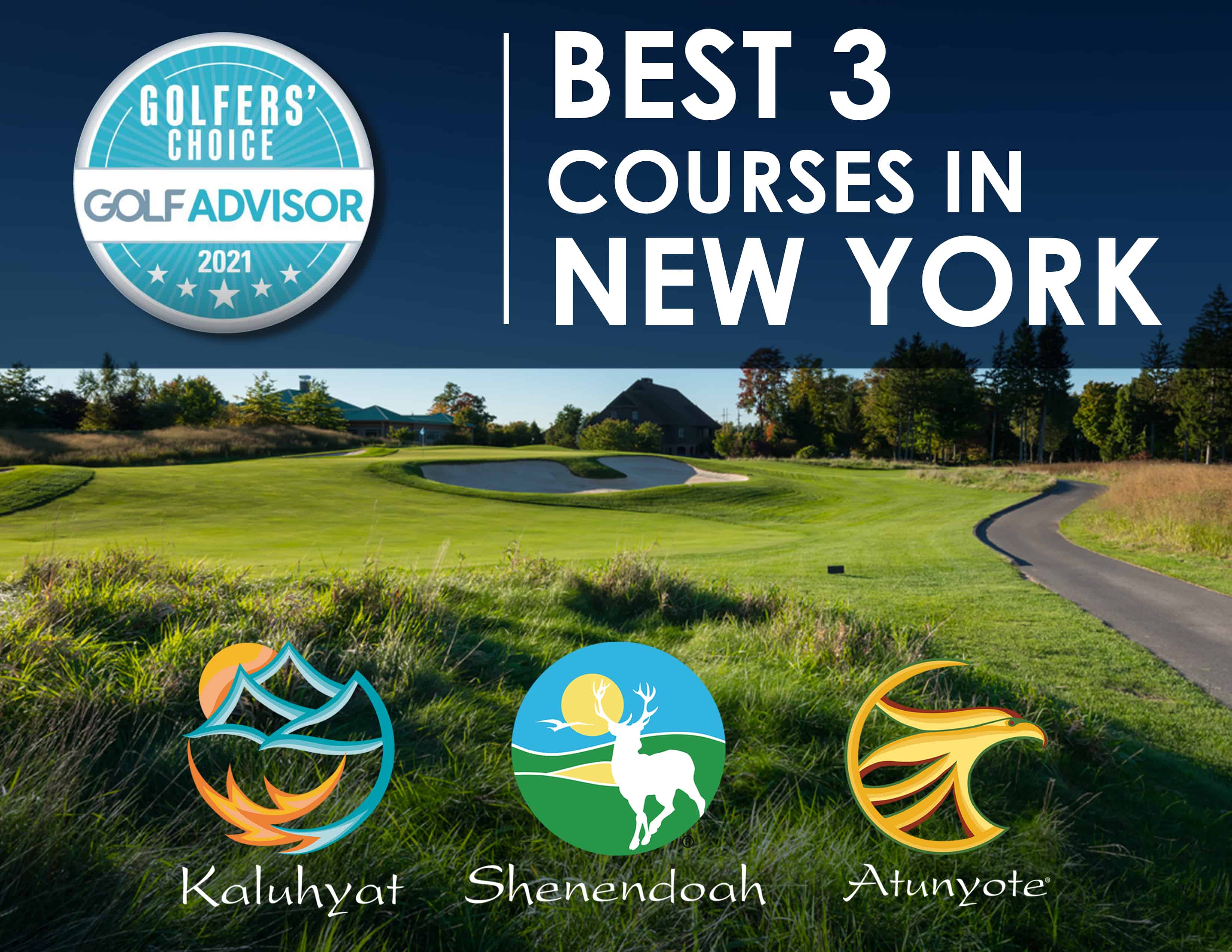 Golf Channel’s online platform Golf Advisor names Kaluhyat, Shenendoah, and Atunyote as the three Best Golf Courses in New York. Golf Channel’s annual Golfers' Choice: Best Courses in New York list is compiled by course ratings and reviews submitted by Golf Advisor’s community throughout the year.
