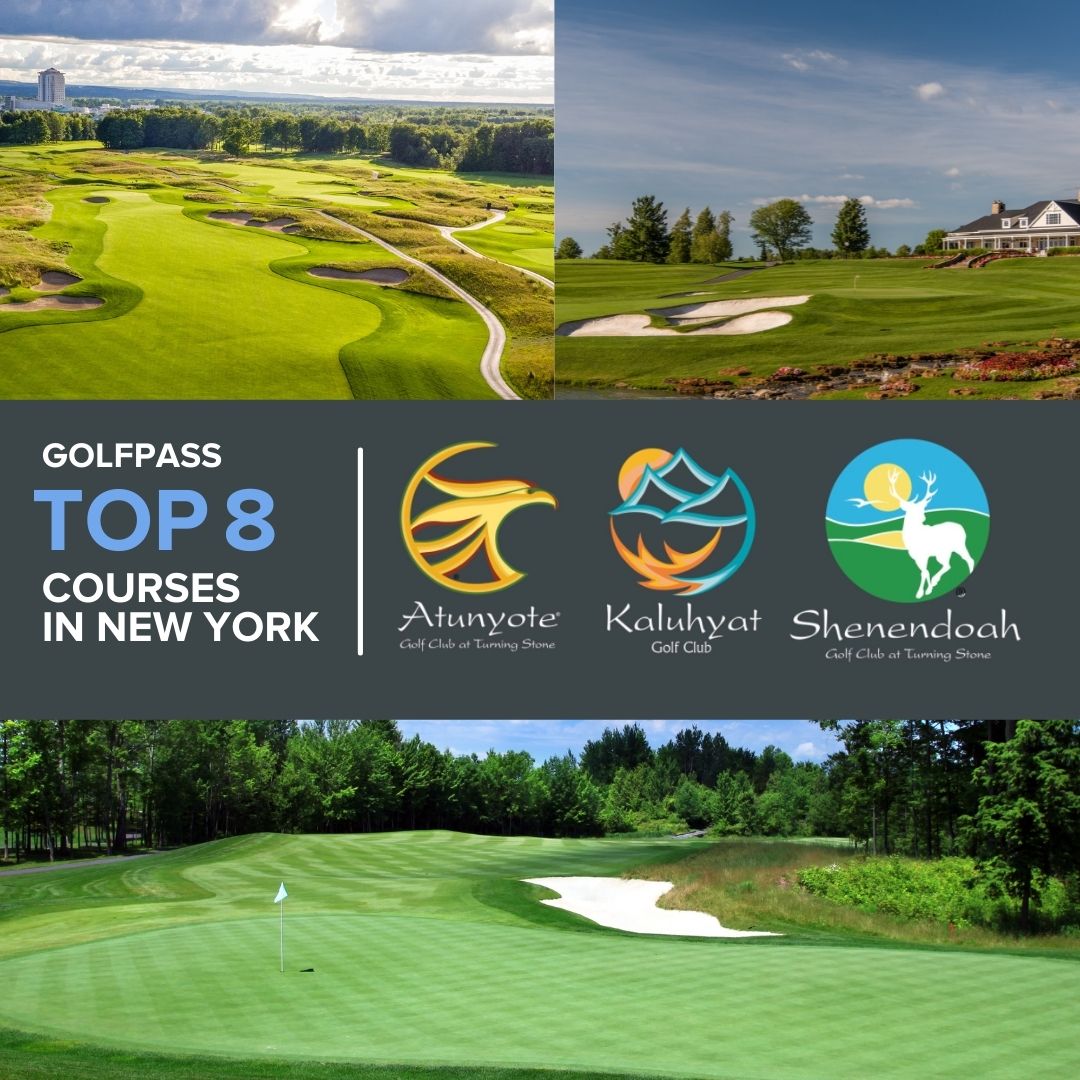 Following a record-breaking year of golf tourism, NBC Sports’ GolfPass recognizes Turning Stone for its three remarkable 18-hole courses. The prestigious golf website ranked Kaluhyat as the No.1 best golf course in New York with Shenendoah at No. 6 and Atunyote as No. 8 in the state.